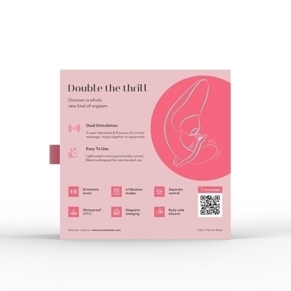 吸引と振動をダブルで楽しめるウーマナイザー!吸引強弱は8段階、振動パターンは6種類搭載。 完全防水なのでバスルームでも使用可能。 使用後は丸洗いでき、衛生的に使用できます。 独立した2つのモーターにより、吸引と振動を同時に、または別々で楽しむことができます。 吸引と振動、ダブルの刺激によるオーガズムを「ブレンドオーガズム」と言いますが、このウーマナイザーブレンドはまさにブレンドオーガズム初心者の方にぴったりなアイテムです!●カラー:ヴァイブラントローズ ※こちらの商品は受注発注商品の為、ご注文から発送までに3、4営業日掛かる場合が御座います。 |