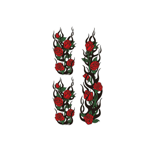 イベントやお祭りに大活躍!レギュラーサイズのペーパータトゥーシール「赤薔薇幻想」。 コスチューム等に合わせて露出した肌に貼り付けるだけ!特殊な素材を使用しているので皮膚の動きと一緒に伸び縮みし、入浴したり海やプールに入っても2〜3日は取れません。 祭り化粧を取る際は、専用のクリーナーやクレンジングクリーム、ベビーローション等で拭き取って下さい。 |