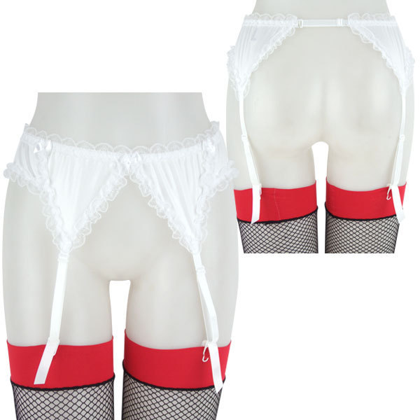 セクシーなガーターベルトもホワイトカラーならキュートに♪光沢素材とフリルレースのガーターベルト。 ●清楚な印象の純白カラー●エレガントな光沢素材●縁取りはラブリーなスカラップレース●腰回りはアジャスター調整可能。 ツヤ感のある純白のグロス素材が特別感を高めてくれるガーターベルト!ガーターストッキングだけでなく、ニーハイソックスとも相性抜群です。 ※ストッキングは付属しません |