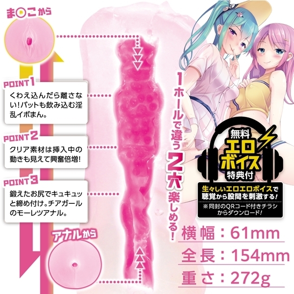 異なる内部構造を備えた2穴仕様の貫通型ホールです♪片側は無数の突起がやさしく包み込み、繊細な感触を演出します!もう一方はやや狭めの構造で、しっかりとしたフィット感が楽しめる設計です♪貫通型ならではの開放感があり、お手入れのしやすさも魅力です!柔らかすぎず、程よい弾力を持つ素材を使用しており、自然な使用感を実現しました♪本体は透明感のあるクリア素材で、内部構造を目でも楽しめるデザインです!手に収まりやすい約272gのサイズで、持ちやすさと安定感のバランスがとれています♪ASMR音声が楽しめる特典チラシも付属し、さらなる臨場感をプラスします!リアルな作り込みと実用性を兼ね備えた貫通型2穴ホールです♪ |