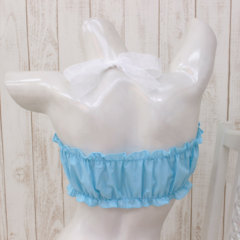 ふわふわ可愛い♪乙女チックなチューブタイプのブラジャー。 ●鮮やかパステルブルー×ホワイト●上下にたっぷりフリルギャザー●胸の真ん中に繊細なリボン付き●すっぽりかぶるだけの簡単装着●首元は可愛いレースリボン。 ホルターネックデザインの可愛いブラが誕生!鮮やかなブルーに透け感たっぷりのレースリボンが乙女度をグンとUPさせてくれる女性用ランジェリーです。 お揃いのショーツ(cm0998)もあわせてどうぞ。 ※水洗い不可、塩素系漂白剤による漂白不可、アイロンは中温で当て布使用、ドライクリーニング可。 ※こちらの商品は在庫の状況によりお届けまでに4日〜7日程度かかる場合がございます。 |