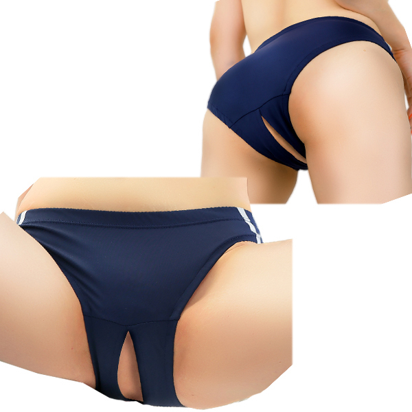 日本国内の工場で縫製され、国産のマイクロファイバー生地を使用した穴あきタイプのブルマ。 穴の両サイドが重なるように縫製しており、正面からは穴が見えにくいシルエットになります。