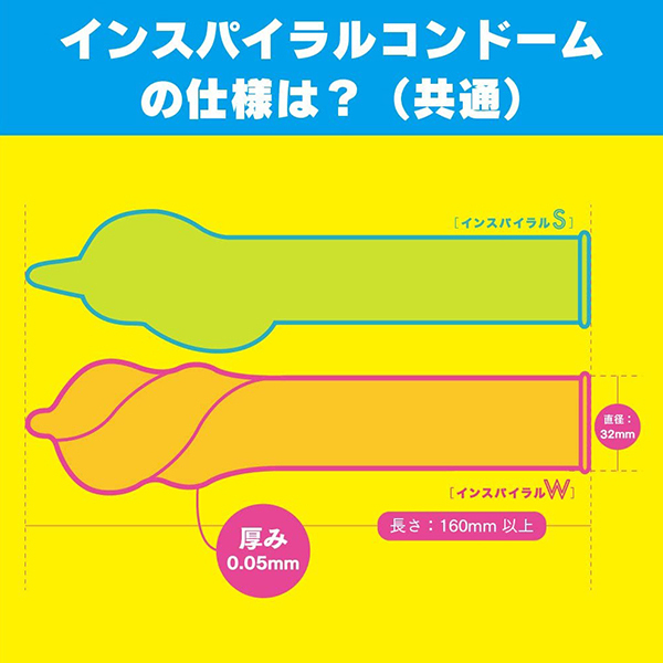 先端部分が幅広となったシングルのスパイラルコンドーム「インスパイラルS」がパッケージリニューアル!違和感なく装着できて、男女ともに気持ちよくなれる新感覚のコンドームです。 世界28ヶ国以上での販売実績を誇り、インドのA.V.K.レディング博士によって13年間の研究と分析の結果、人間工学に基づく最初のコンドームとして開発されたインスパイラルコンドーム。 従来以上の機能性と他にはない感覚をぜひお楽しみください♪ |